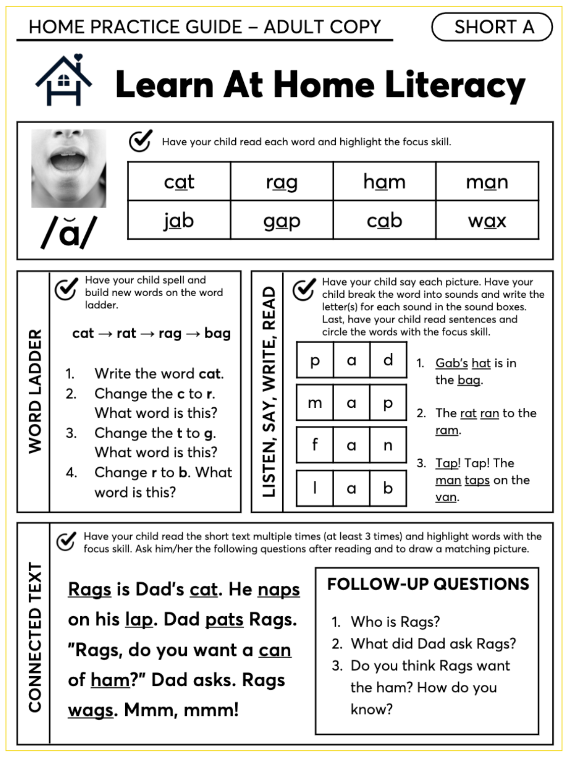 - Short A Learn at Home Literacy Pages – Free Download (PDF)